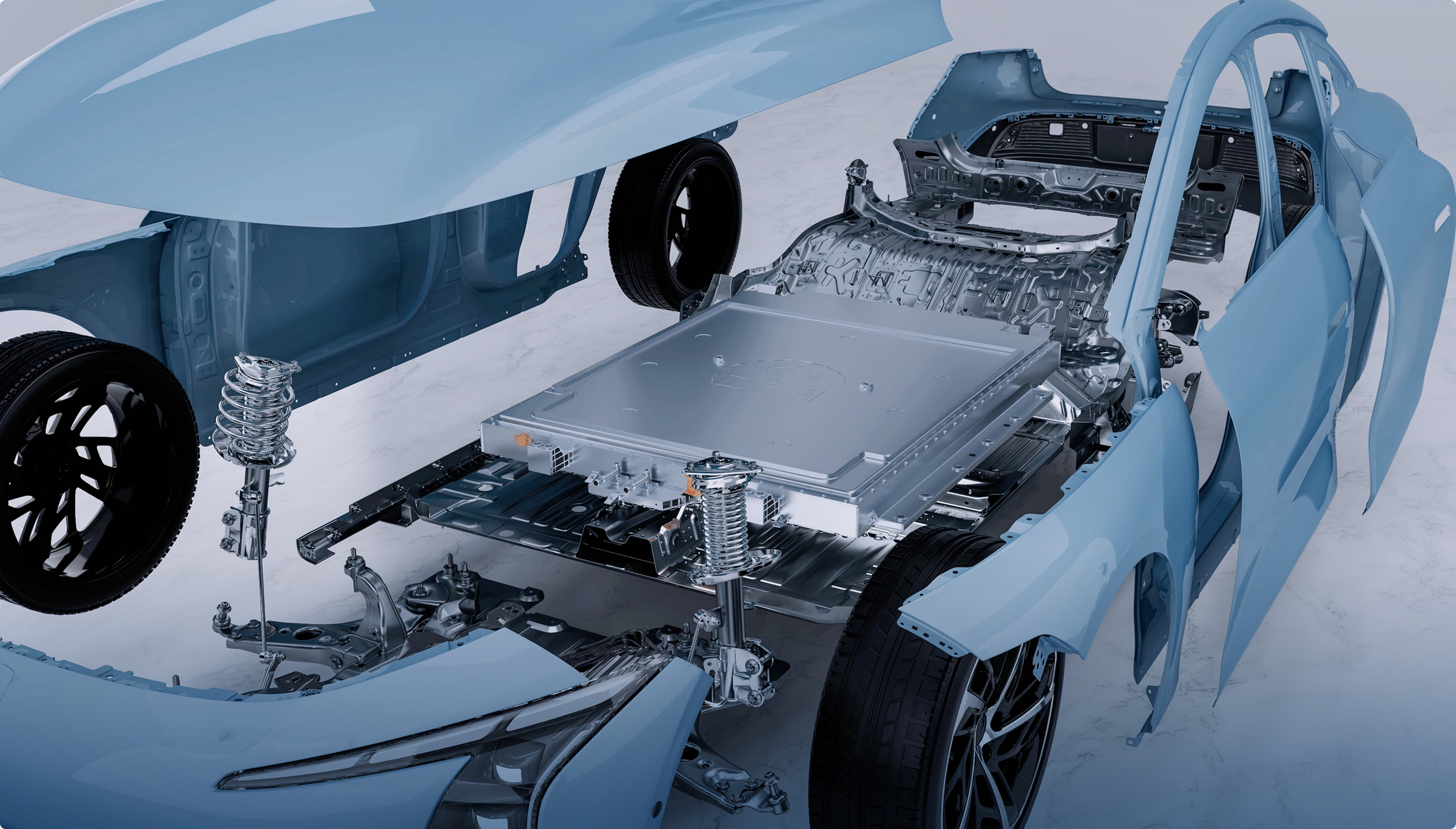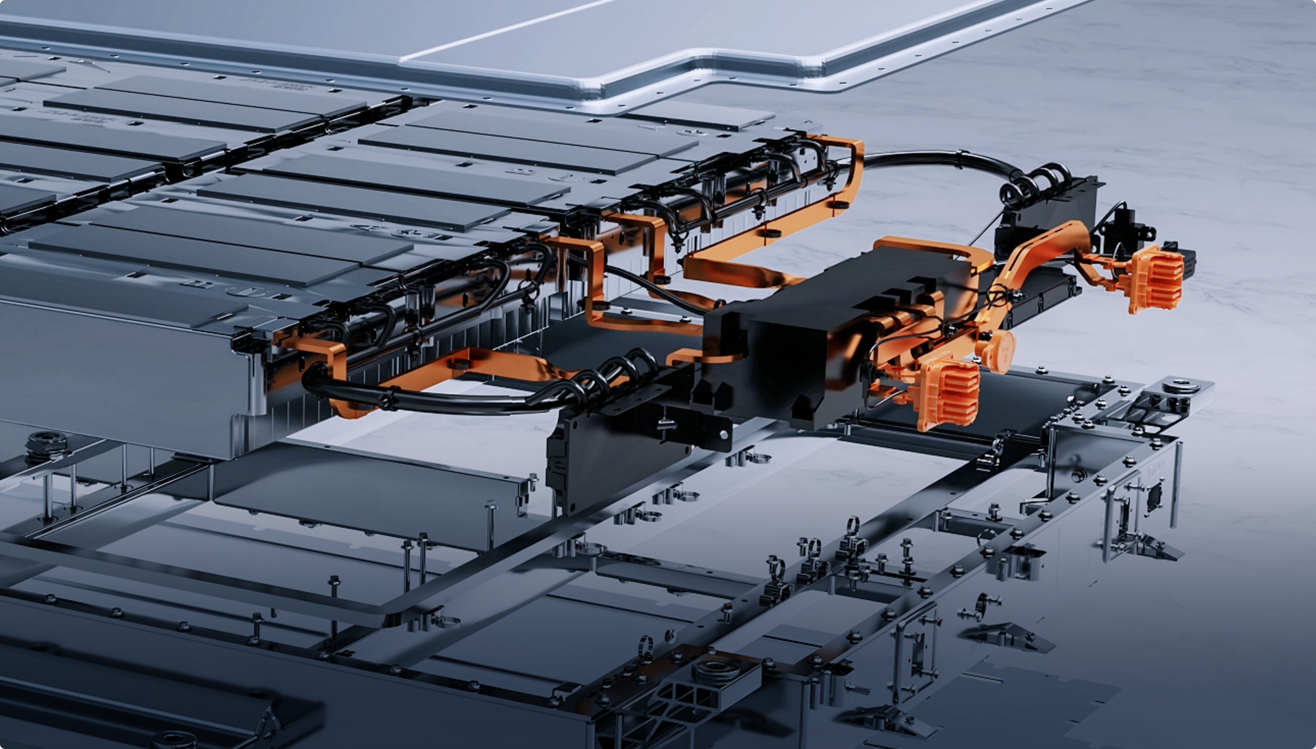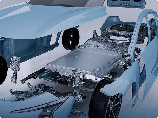 铠甲电池设计采用高强度框架结构框架内部设有横纵梁,与车身横梁连接成一体的全框式电池包结构,增加整体强度,实现整车侧碰模组零挤压。