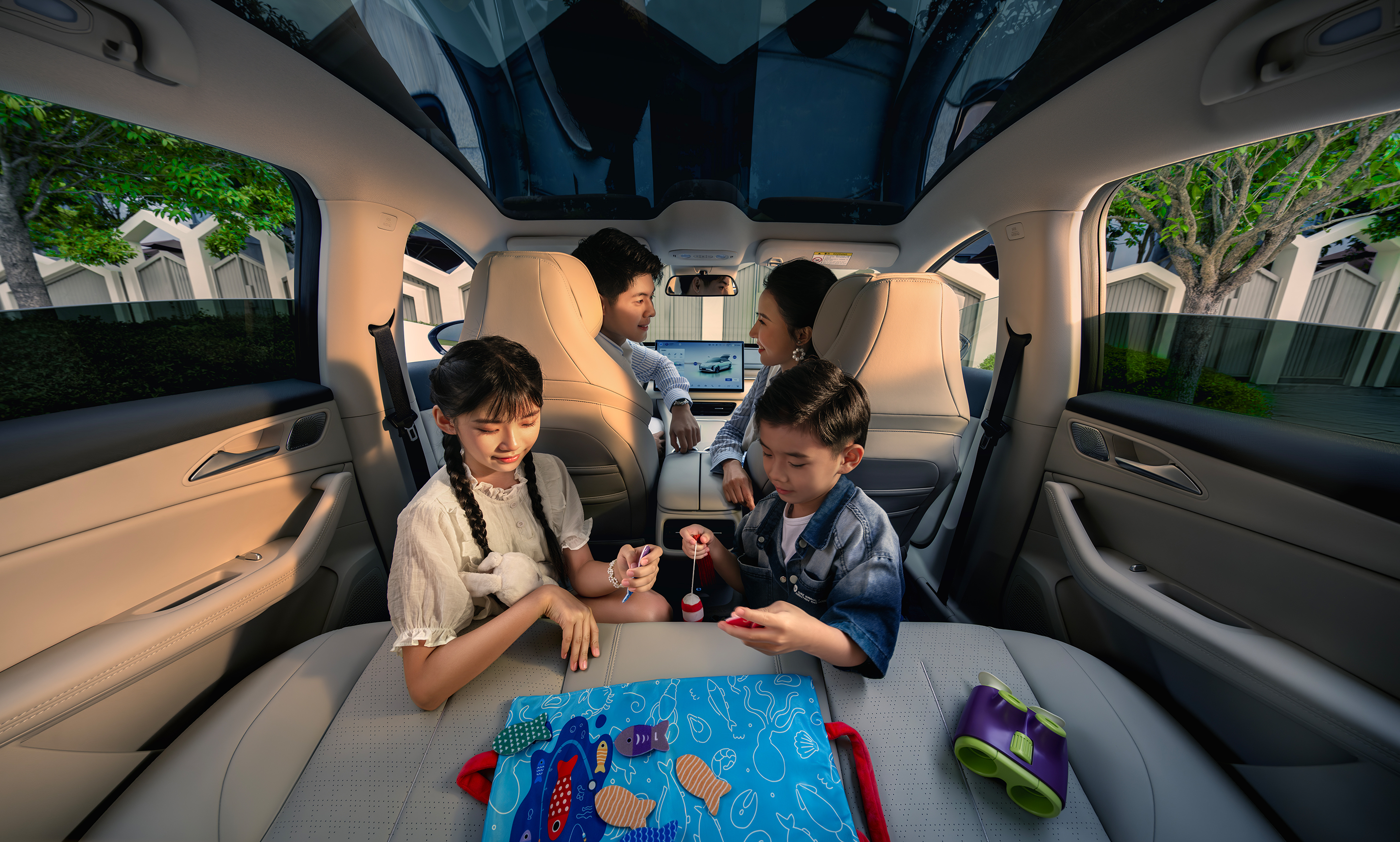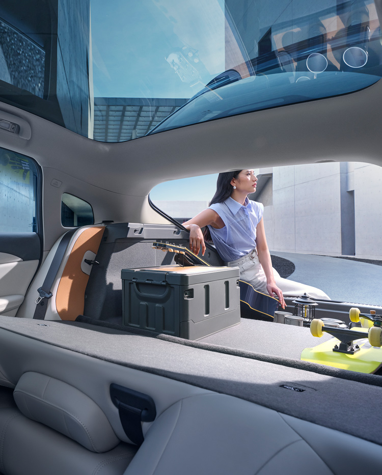 汲取了双曲面水滴造型灵感,通过精确计算的弧度曲率实现了从车头至车尾的平滑过渡,创造出独特的车顶流线形态;