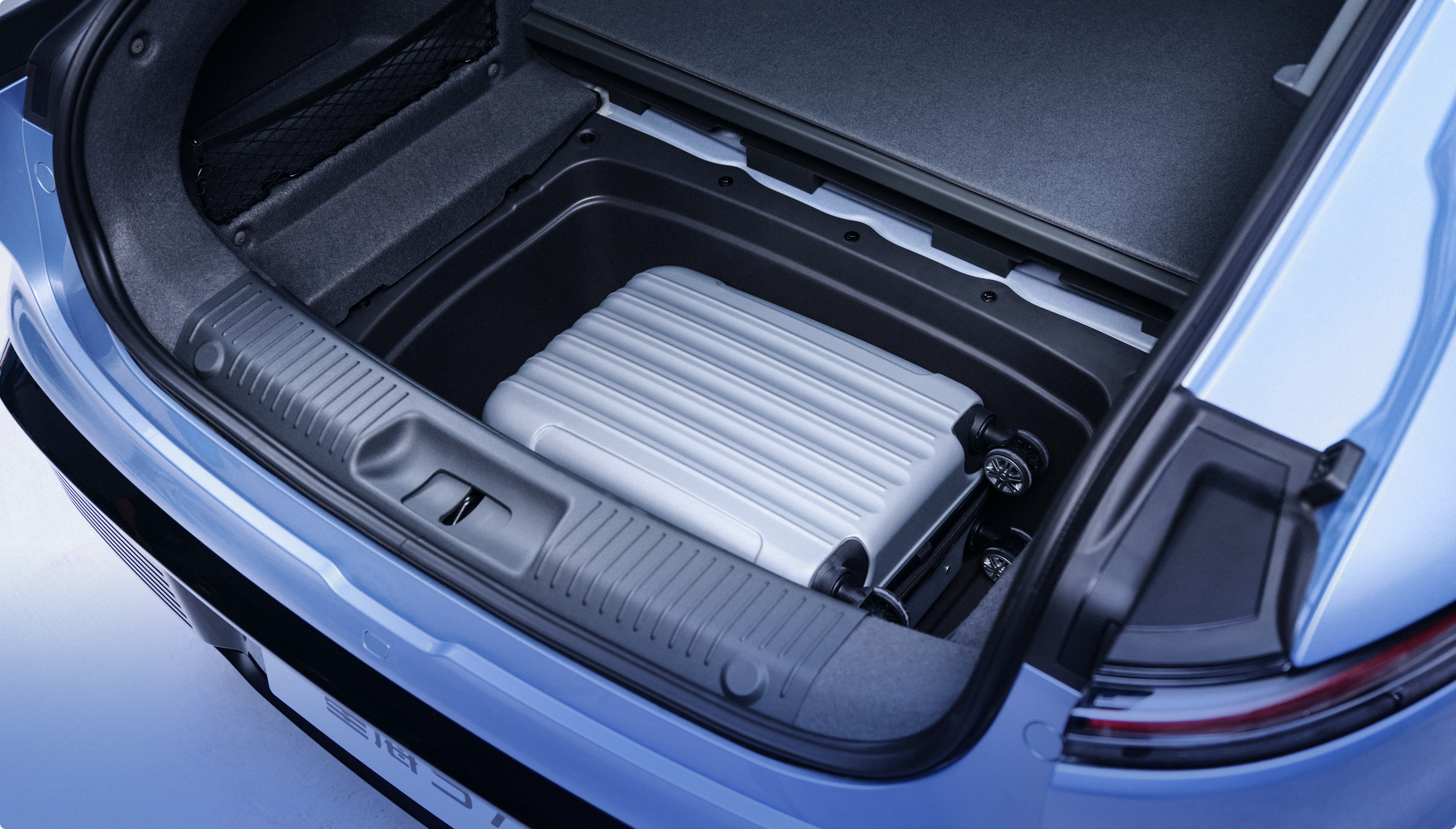 打开盖板后呈现出115L超大下沉储物空间,容纳更多更大行李箱;后排座椅放倒达到1303L,深度达到1942mm。