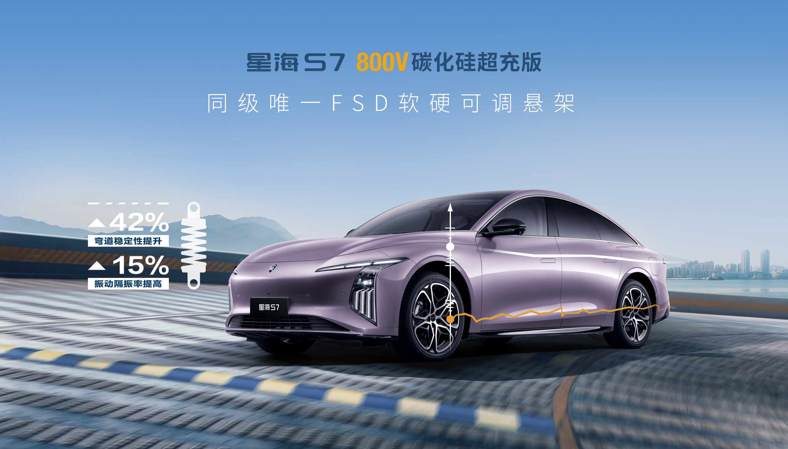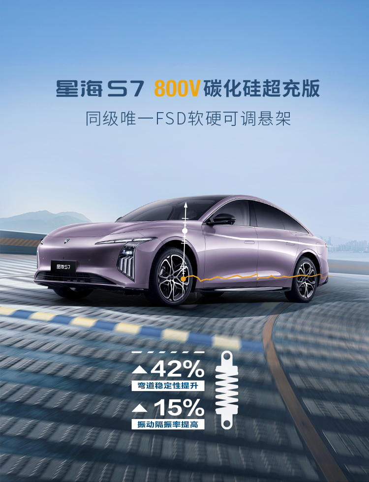 意大利跑车同源FSD软硬悬架,同级唯一软硬可调FSD悬架,驾乘双舒适,弯道稳定性提升42%,振动隔振率提高15%。