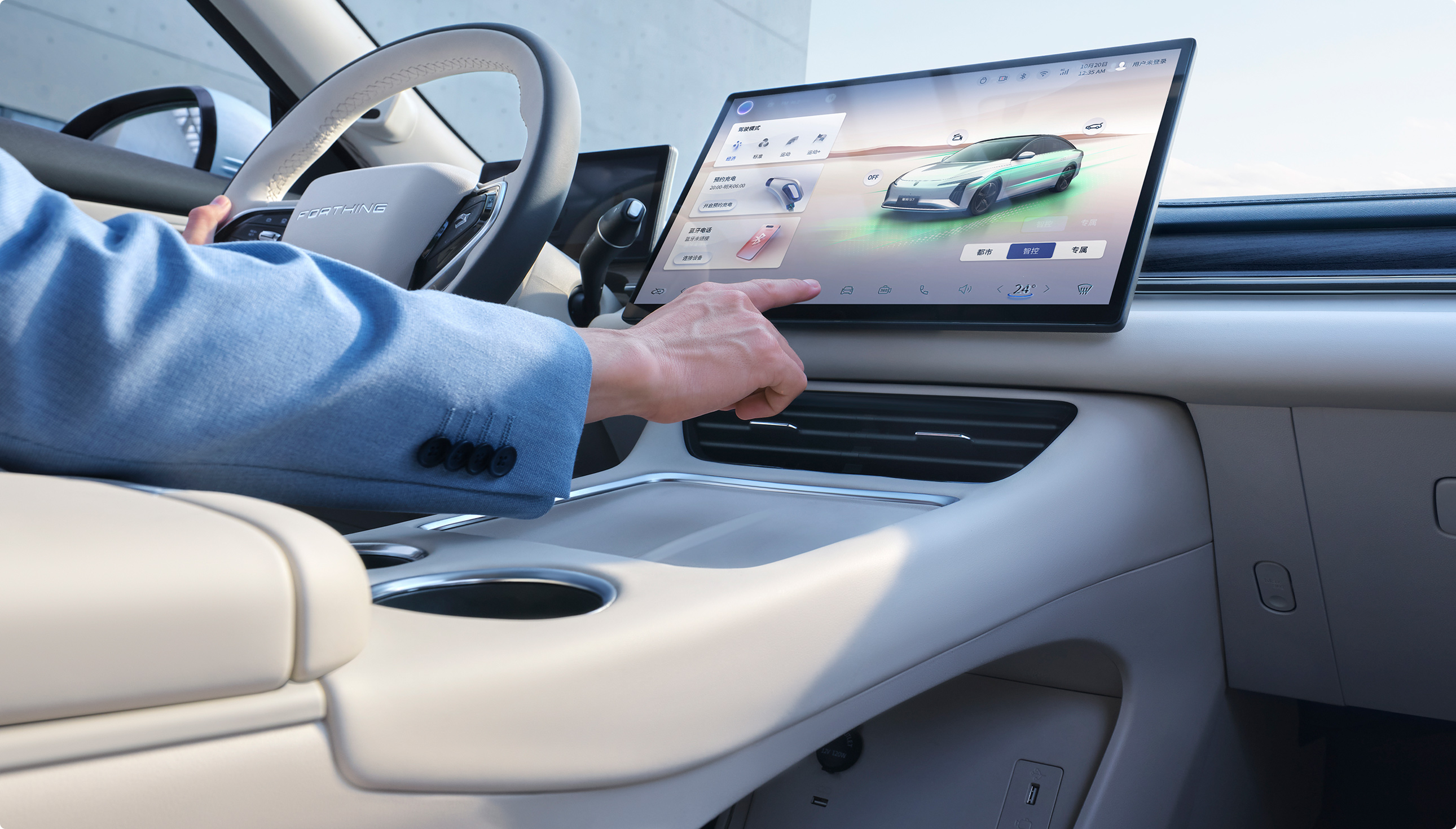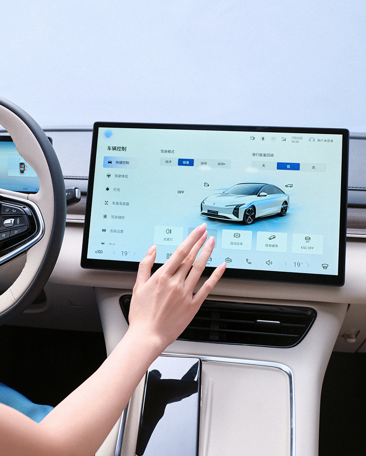 星海S7座舱设计如“云的简雅”,追求简约而不失雅致的静谧格调,细节上强调轻盈与流动感,既增强了座舱的层次感,又展现了现代科技的含蓄之美,一入座宛如云端漫步。