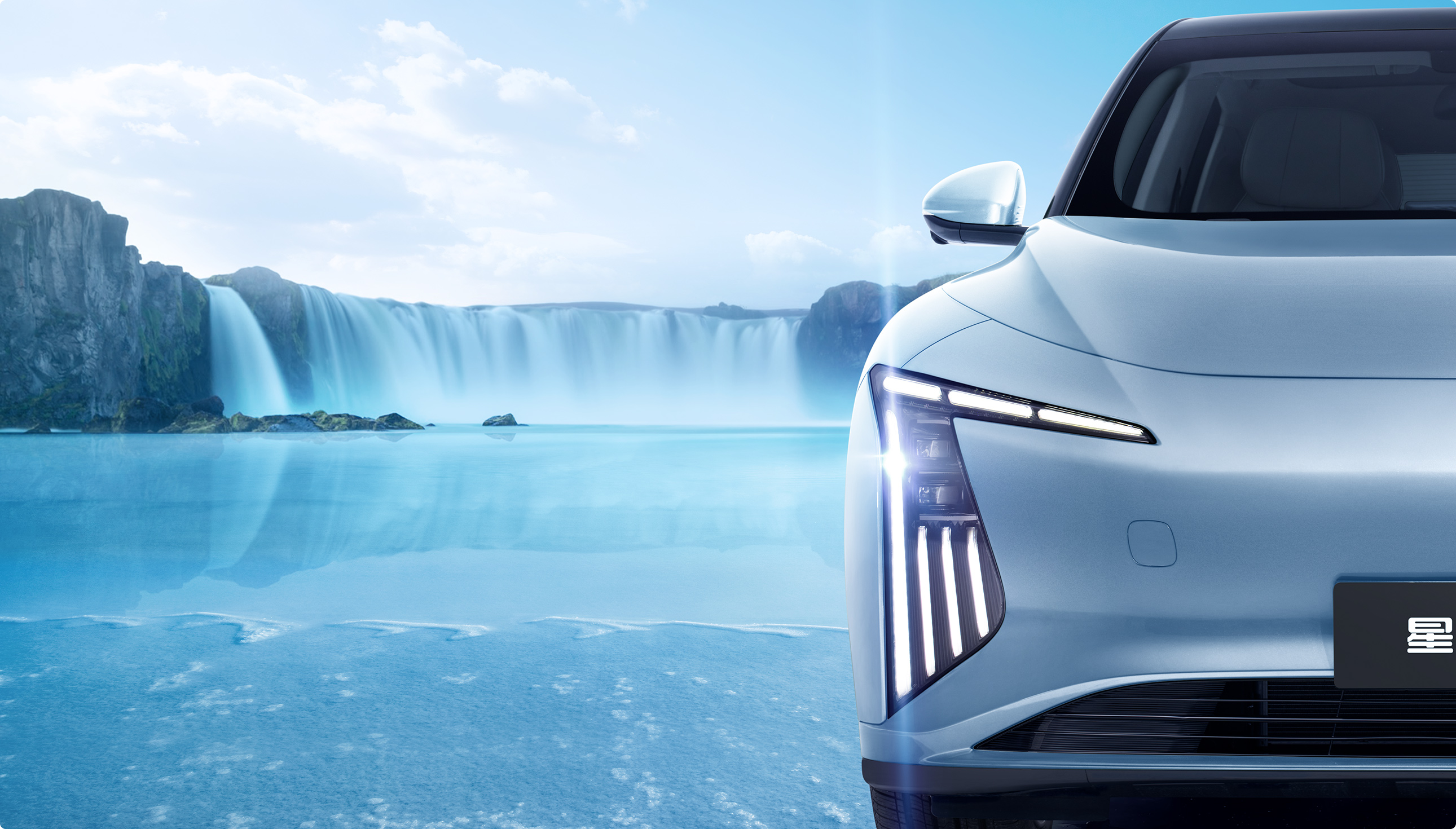 瀑布式前灯设计灵感源于“飞流直下三千尺,疑似银河落九天”诗句,“流银”体现伴随水流灵动的自然之光,天然与科技的充分融合。