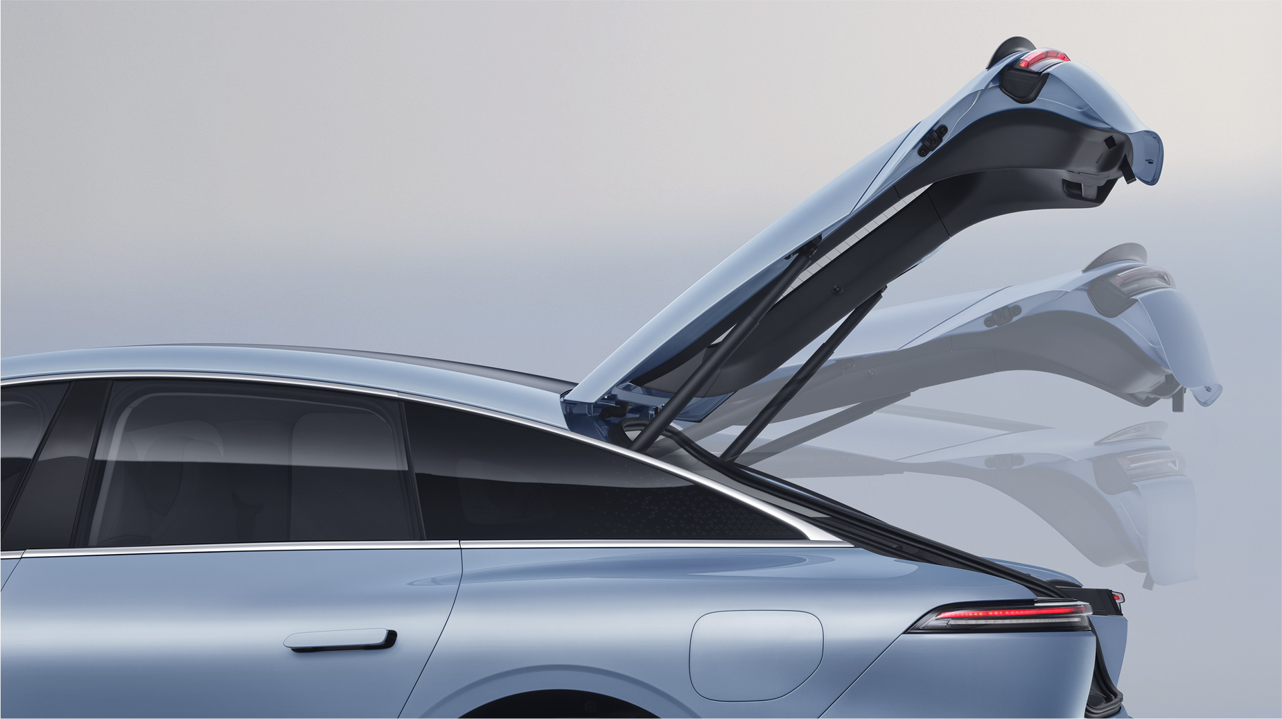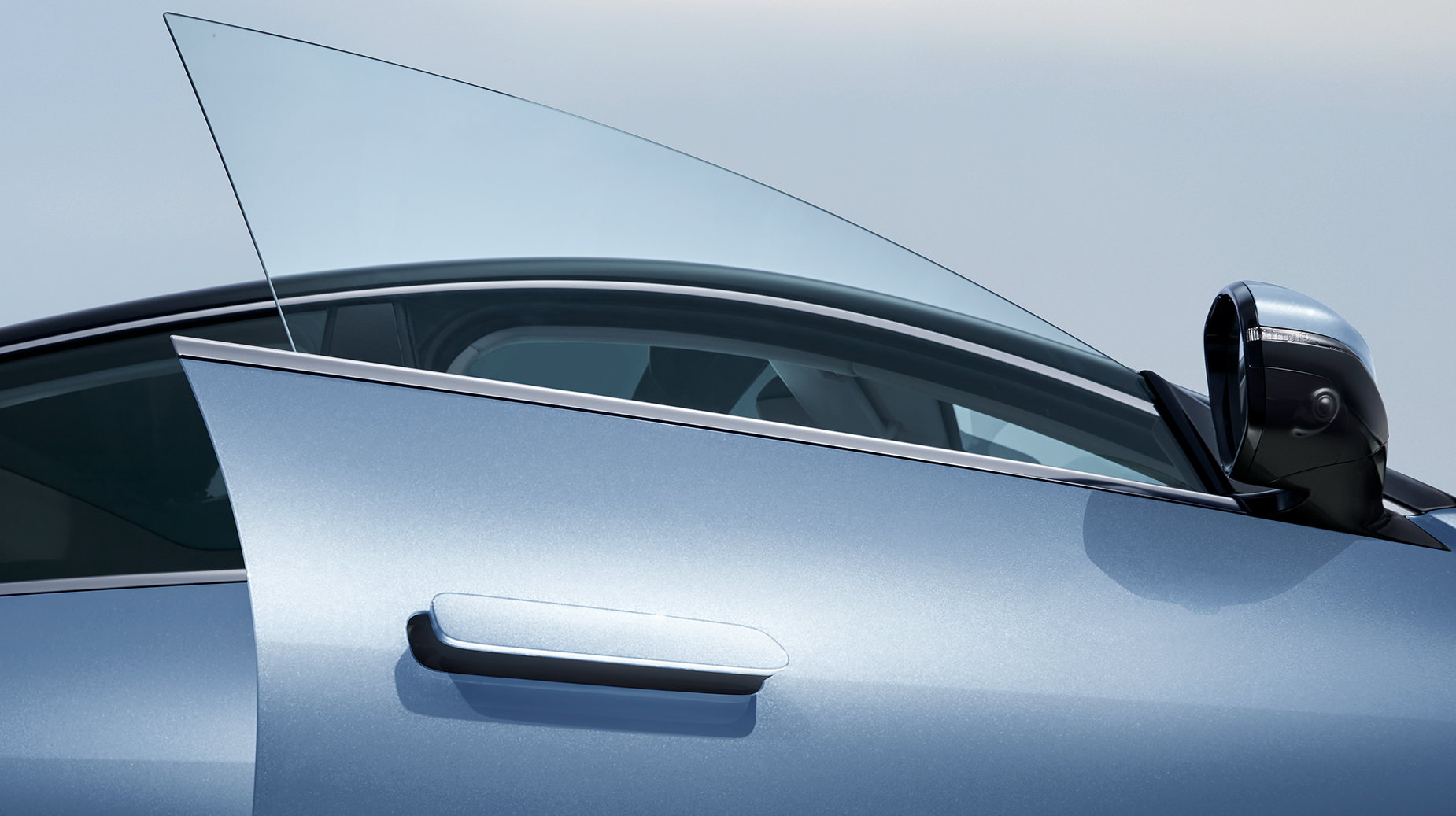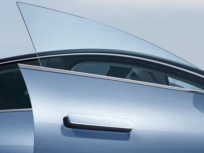 侧颜干净简洁,无棱线设计,通过型面雕塑和Y0曲线呈现高级的曲面高光,流畅的Y0线促成了长达3.65米的无拐点全玻璃穹顶,营造出连绵且流动的视觉冲击力。