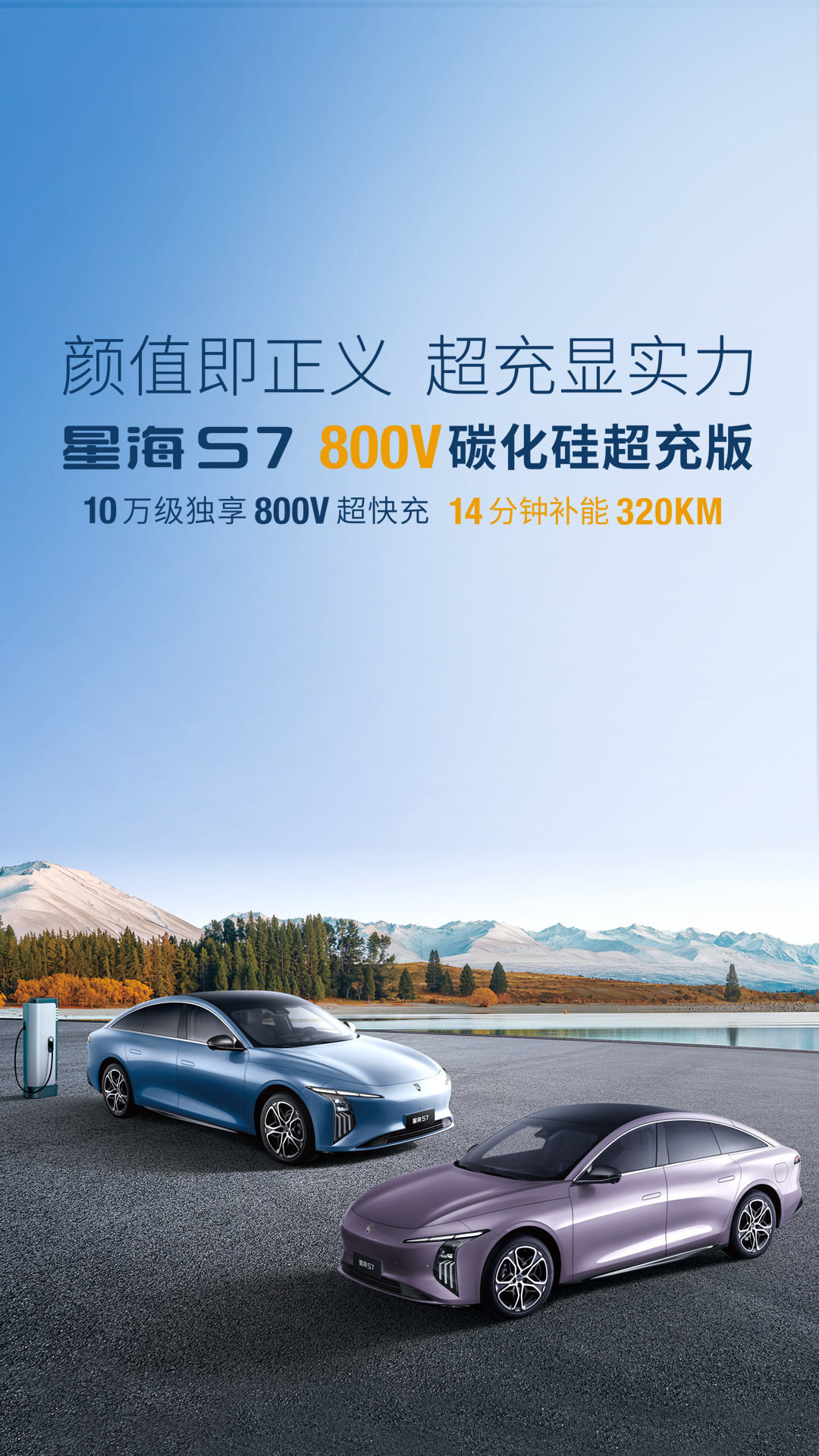 800V高压架构 + 高效电驱核心,超快充电速度,14分钟疾充,续航猛增300+公里。