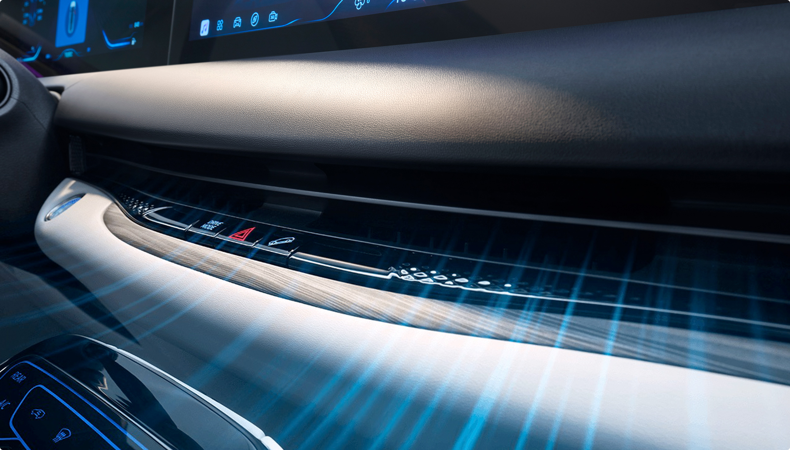 贯传式氛围灯犹如一幅流动的光绘画卷,可通过语音进行声光联动,随心切换三种模式的色彩换车氛围。