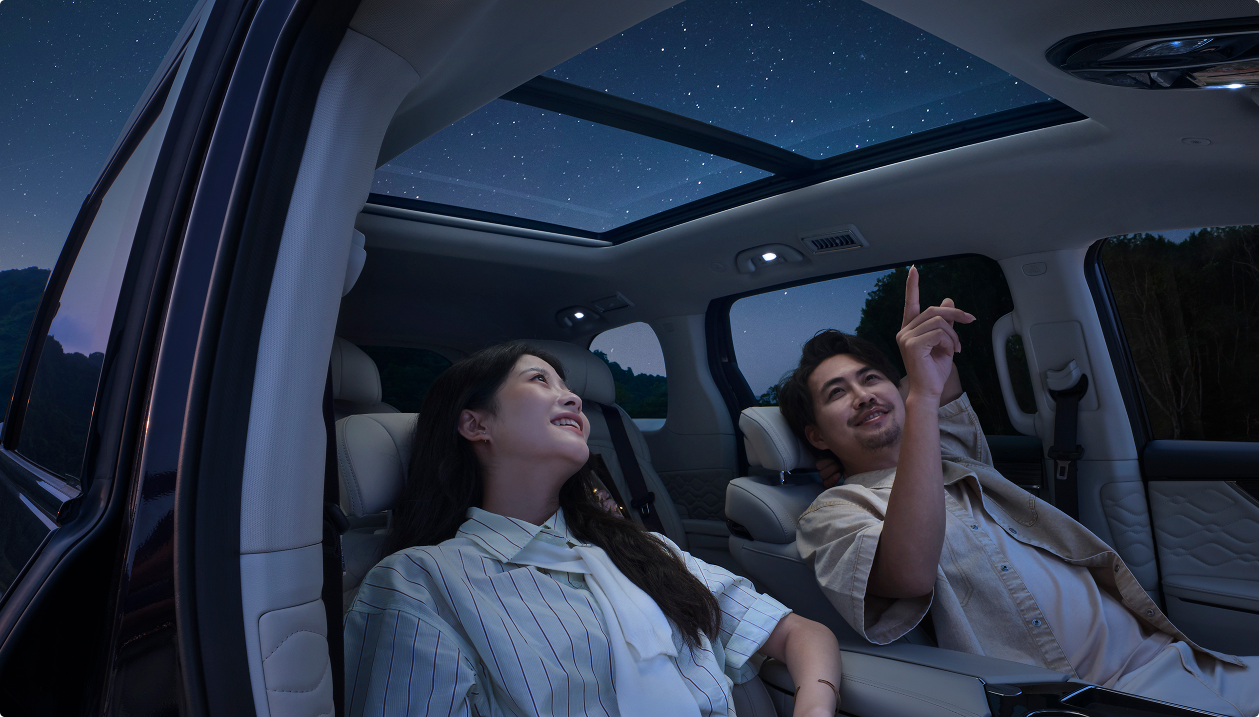 870mm超广角全景天窗,采用无隔断设计打造通透明亮的超广角视野,让头顶的星空仿佛就跳跃在眼前。